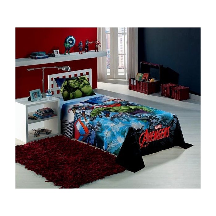 O jogo de cama com 2 peças da coleção Avengers ilustra os corajosos heróis Capitão América, Incrível Hulk, Thor, Visão e Homem de Ferro, em mais uma batalha contra seu inimigo Utron. Em tons de azul, vermelho, cinza e verde é perfeito para decorar o quarto dos garotos que curtem quadrinhos, muita ação e aventuras.