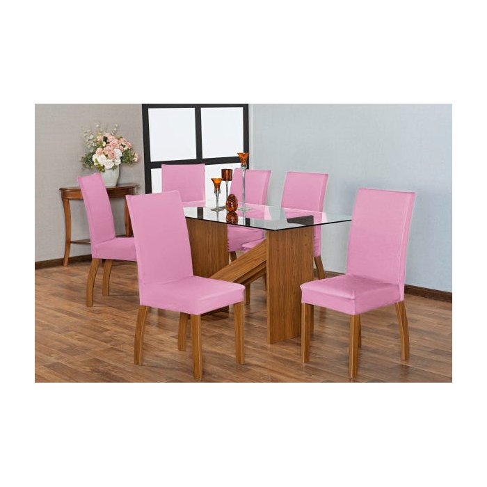 Jogo capa de cadeira 4 lugares malha coladinha rosa