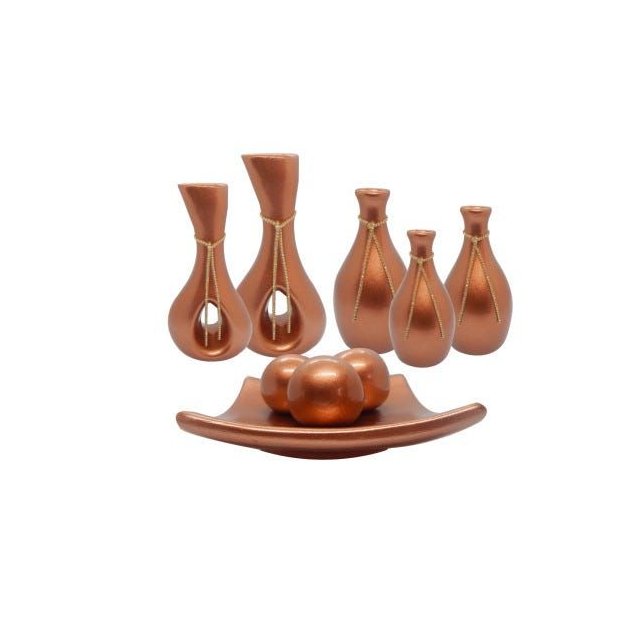 Você recebera em sua casa um kit completo com 9 peças confira os tamanhos a baixo trio de vasinhos, e fruteira com esferas, feito com o mais alto padrão de qualidade, temos certeza que você vai se surpreender. Aproveite.