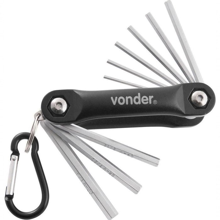 1 Jogo de chaves allen composto por um suporte em alumínio com 9 peças, sendo: 5/64" , 3/32" , 7/64", 1/8" , 9/64" , 5/32" , 3/16" , 7/32" e 1/4"