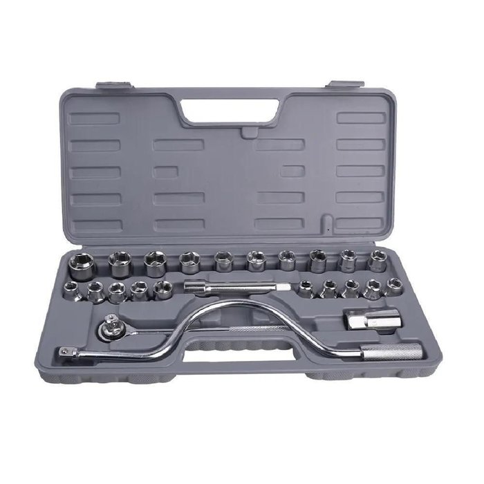 Jogo Chaves Soquete 25 Peças Catraca 1/2 Kit Ferramentas Completo Maleta Cachimbo Roda 8-22mm