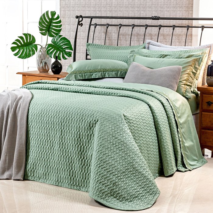 Jogo Colcha Super King 400 Fios Egípcio 100% Algodão Verde + Jogo de Cama - 7 Peças