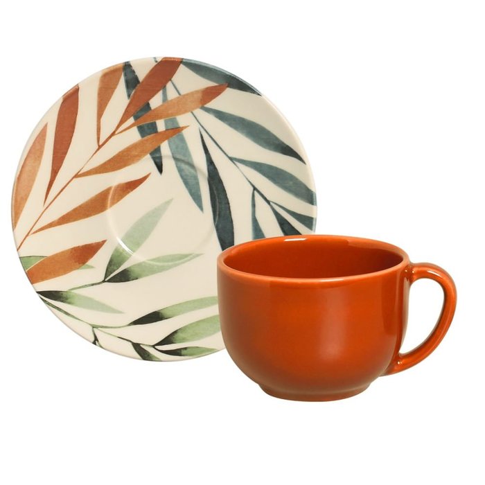 Jogo com 06 Xícaras e 06 Pires para Chá Coup Cróton Bege e Laranja
