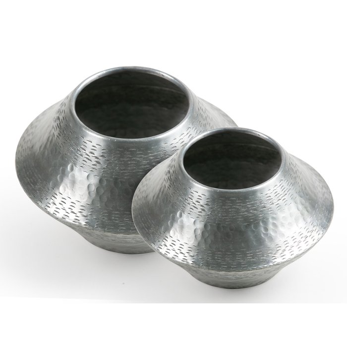 Jogo com 2 Cachepot Objeto de Decoração em Alumínio Artesanal Bekasa Pl-44209