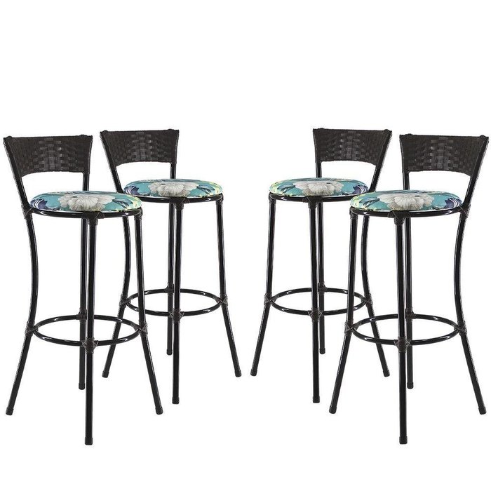 Jogo Com 4 Banquetas Altas Forts Fibra Uv Bancada, área Goumert, Bar, Piscina, Balcão, Floral Azul