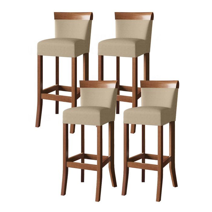 Jogo com 4 cadeira para bancada banco alto de madeira bar cozinha americana encosto estofado Valios IMBUIA | BEGE