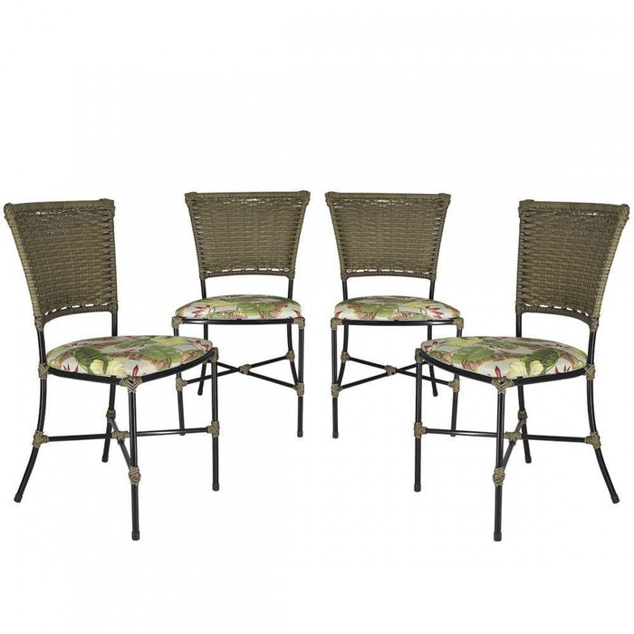 Jogo Com 4 Cadeiras Fibra Sintética Pequi Com Floral Verde Pequi com Floral Verde