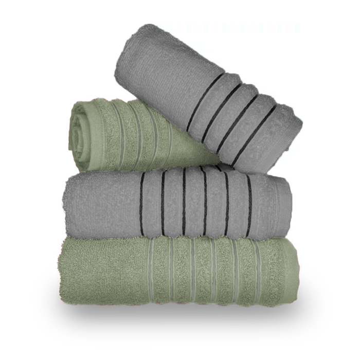 Jogo com 4 Toalhas Wave Premium 450g/m² Algodão Banhão e Rosto Verde e Cinza