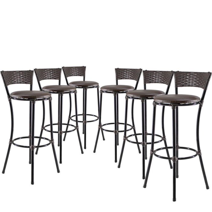 Jogo Com 6 Banquetas Altas Forts Fibra Uv Bancada, área Goumert, Bar, Piscina, Balcão, Floral Floral Marrom
