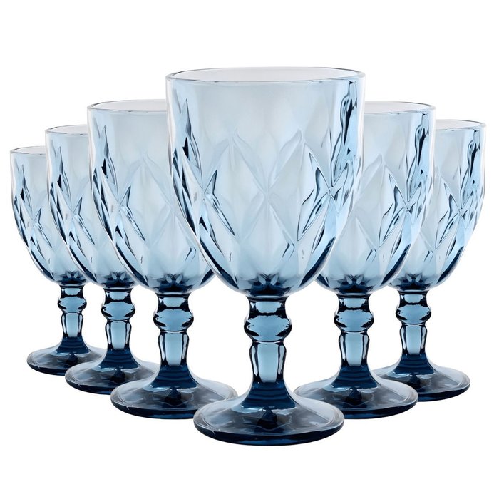 Jogo com 6 Taças Diamante de Vidro Azul de Agua ou Suco 260ml Azul