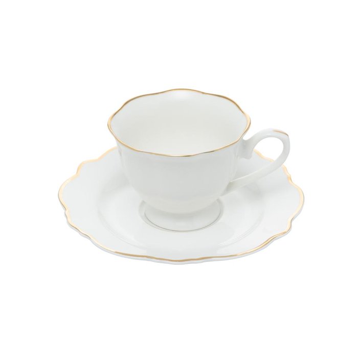 Jogo com 6 Xícaras e Pires para Café em Porcelana Maldivas Branco com Fio Dourado 80ml - Wolff