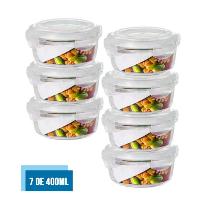 Jogo com 7 Potes Vidro Hermético Mantimentos Marmita 400ml