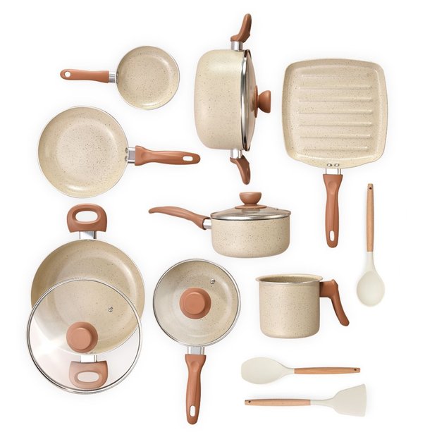 Jogo com 8 Panelas Antiaderentes de Ceramica e Aluminio Bege Terrara e 3 Utensílios de Silicone - Oi OFF WHITE
