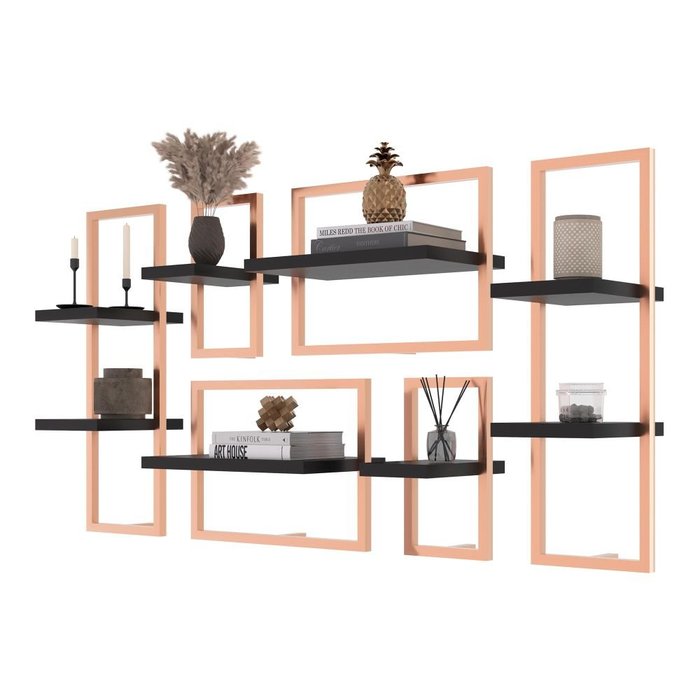 Jogo com 8 Prateleiras Galaxia Preto Cobre Preto Cobre