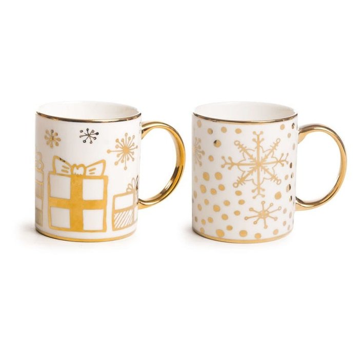 Jogo com 2 canecas sortidas presentes com flocos de neve e flocos de neve com poá, capacidade; 350ml