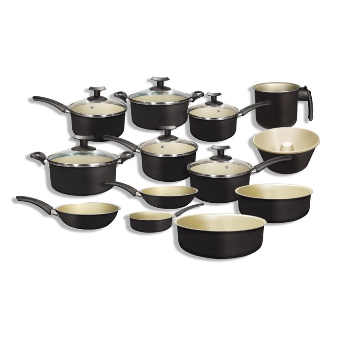 Jogo Completo 13 Panelas Antiaderente Preto Bege