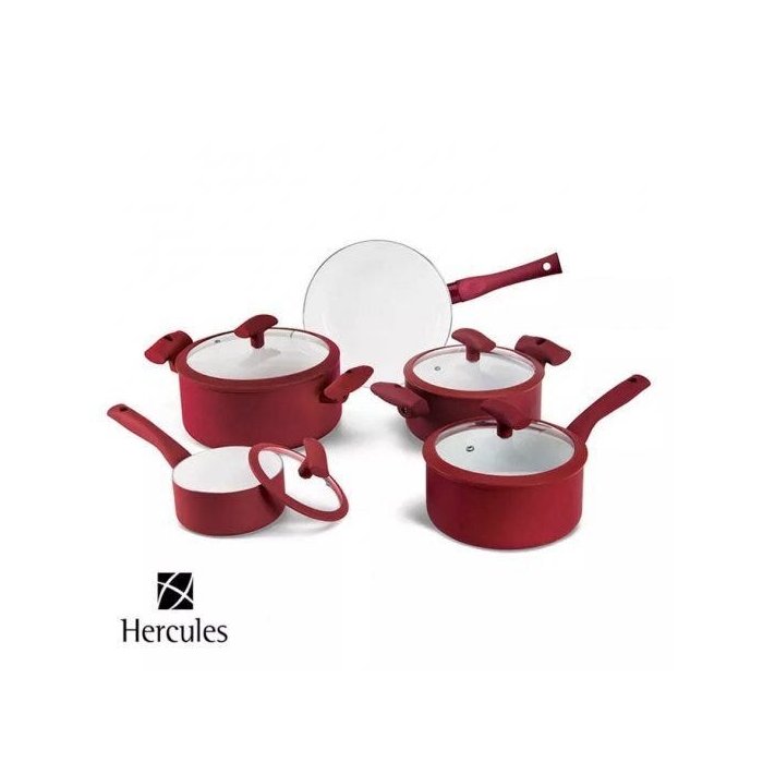 Jogo Conjunto de Panelas Indução 5 Peças Vermelho Hercules Vermelho