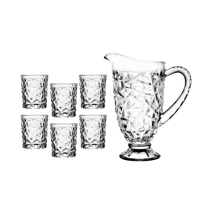 Jogo Copos Com Jarra De Vidro Diamond 7pç Água Suco G-House