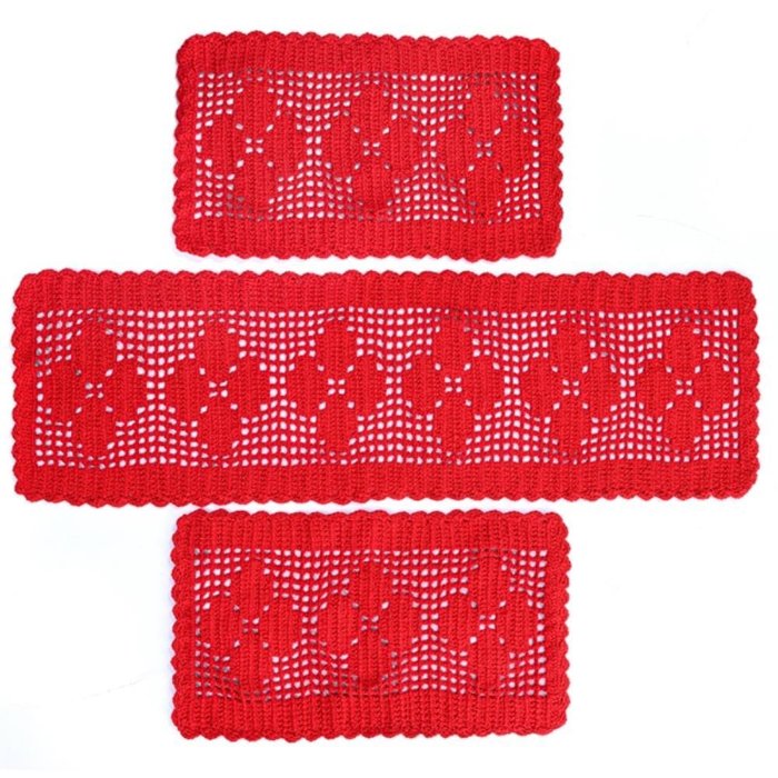 Jogo Cozinha 2 Tapete+1 Passadeira Crochê Algodão Decoração