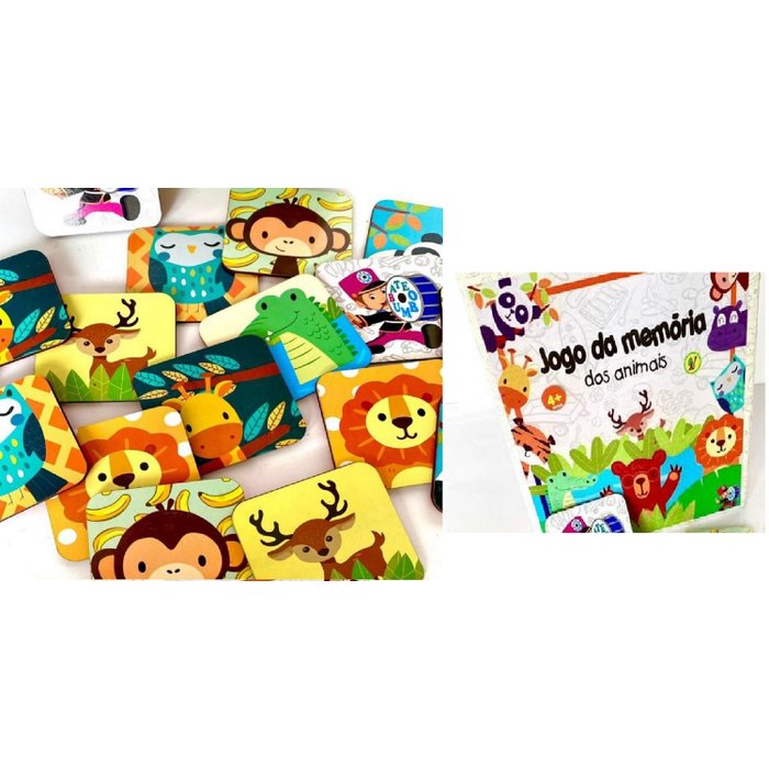 Jogo da Memória Brinque e Leia Tema Animais Com 24 peças (Tam. das Peças 8x7cm) - Ref 36003 UNICO Co