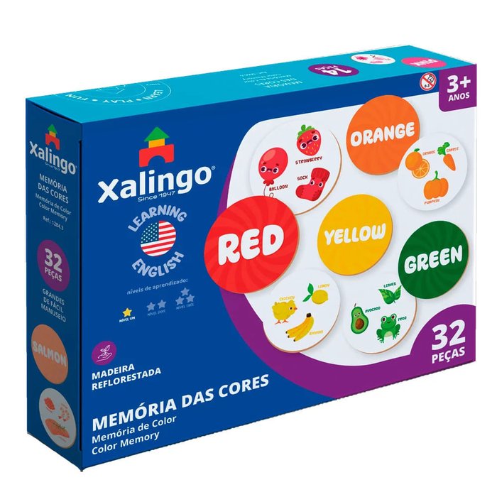 Proporcione um aprendizado significativo e cheio de diversão para as crianças com o Jogo da Memória Cores em Inglês Xalingo 32 Peças. Descubra a alegria de aprender brincando e veja as crianças explorarem o mundo das cores e do inglês com entusiasmo e curiosidade!