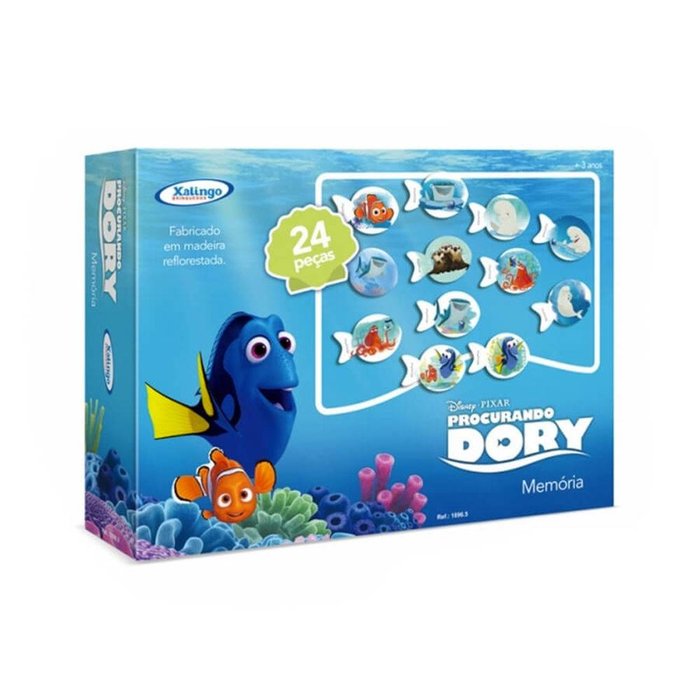 Jogo Da Memória Procurando Dory Disney Pixar 24 Peças - Xalingo traz os personagens favoritos para brincar e se divertir de memória: Dory, Nemo, Marlin, e muitos outros. O jogo da memória possibilita desenvolver a atenção, a percepção visual e a memória fotográfica, além da identificação de semelhanças e diferenças das figuras. São 24 peças em formato de peixinho, feitas em madeira, para ser jogado individualmente ou em grupo. Indicado para crianças a partir dos 3 anos de idade.