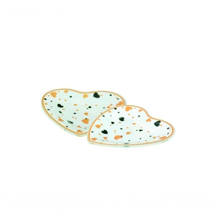 Jogo de 2 Pratos de Corações Rasos de Vidro Branco