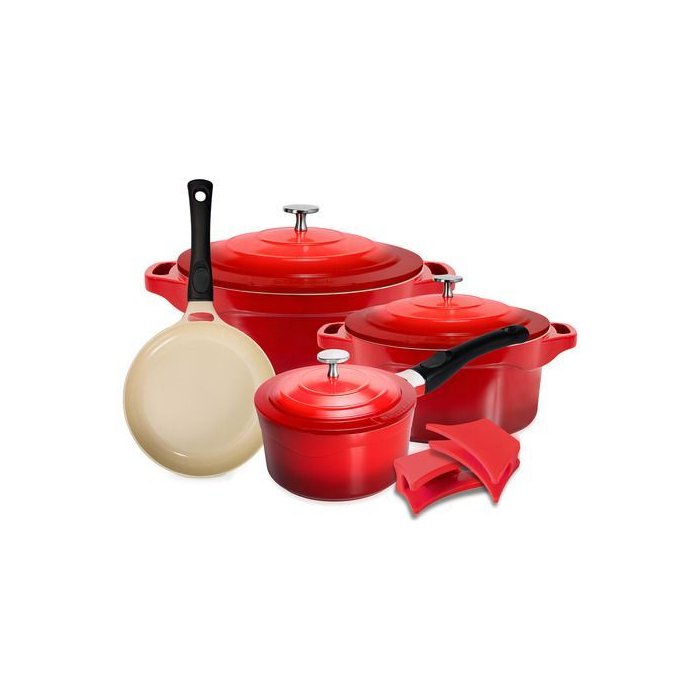 Ref.: LC1853Material: alumínio com revestimento interno cerâmicoCor: vermelhaPeso (KG): 6,500CxLxA: 28 x 26 x 24 cmAcompanha: 1 Panela Caçarola Revestimento Cerâmico 20 cm Vermelha | 1 Panela Caçarola Revestimento Cerâmico 24 cm Vermelha | 1 Panela Caçarola Revestimento Cerâmico 18 cm Cabo Destacável Vermelha | 1 Frigideira Revestimento Cerâmico 24 cm Cabo Destacável Vermelha |2 alças protetoras de siliconeMarca: Le CookFabricante: Marcamix - Utilidades Gourmet