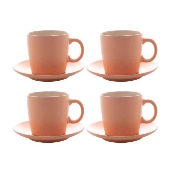 Jogo de 4 Xícaras com Pires Granilite em Cerâmica 200Ml Salmon