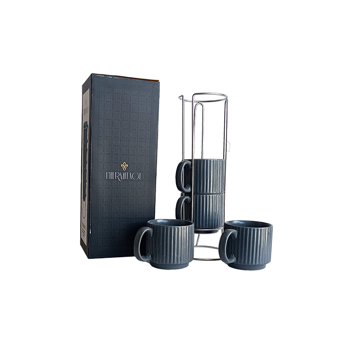 Transforme seus momentos de chá com este conjunto funcional e elegante. As canecas empilháveis em cerâmica são resistentes, ideais para uso diário e combinam design moderno com praticidade para economizar espaço. O suporte seguro e compacto mantém as canecas organizadas, facilitando o armazenamento e o transporte.