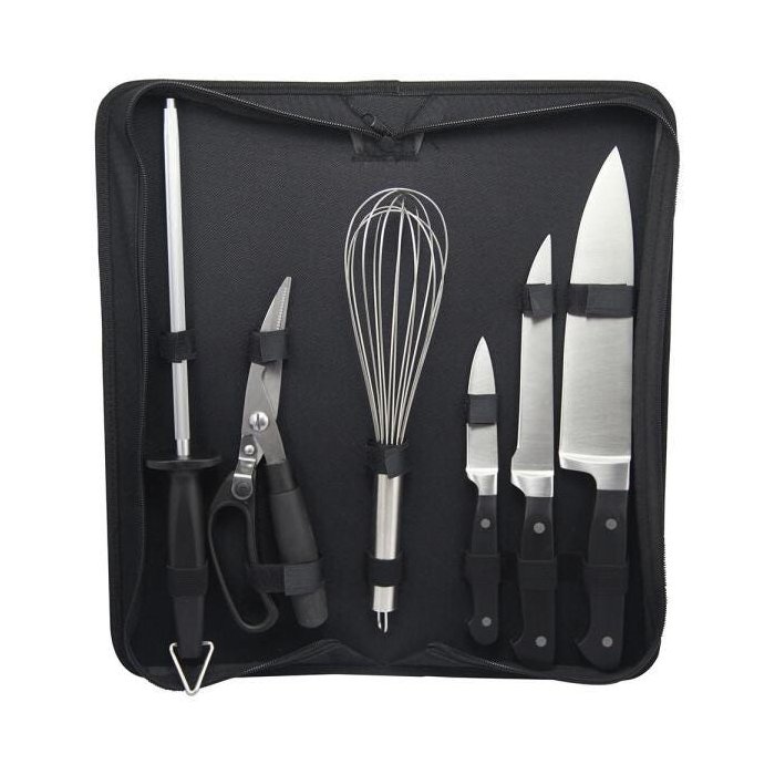 Jogo de 6 pecas para churrasco em aco inox com bolsa de nylon