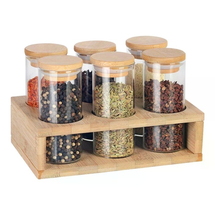 Jogo de 6 porta condimentos com suporte em bambu 160ml L22,5xP13,5xA13cm