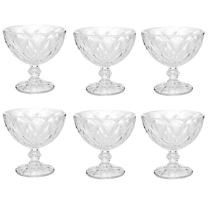 Jogo de 6 Taças Diamond Lyor para Sobremesa 250ml Transparente Tigela de Vidro para Doces Frutas