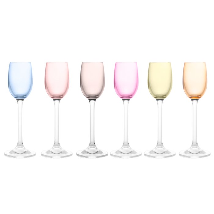 Jogo de 6 Taças para Licor em Cristal Bohemia Gastro/colibri Colorida 65ml Rojemac Verde, Cinza, Ambar, Rosa, Lilás e Azul