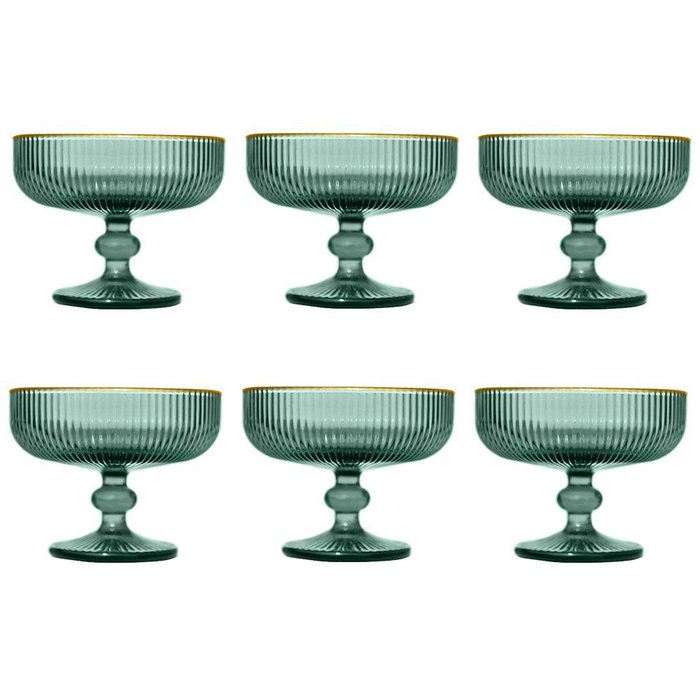 Apresentamos o Jogo de 6 Taças para Sobremesa em Cristal Verde com Borda Dourada 310ml: