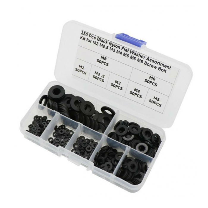 350 pcs - arruelas DURAS - NÃO SÃO FLEXÍVEIS7 Tamanhos Preto Anel de Isolamento NylonKit Sortido M2, M2.5, M3, M4, M5, M6, M8- para melhoramentoS Da casaMarca de Alta qualidadeMaterial: NylonCor: PretoTamanho: M2, M2.5, M3, M4, M5, M6, M8 MILIMETROSPreto NylonKit Para M2 M2.5 M3 M4 M5 M6 M8Parafuso Parafuso.Conveniente para o uso. Pacote inclui:50 x M2 5*1 milímetros Arruela50 x M2.5 5*1 milímetros Arruela50 x M3 8*1 milímetros Arruela50 x M4 9*1 milímetros Arruela50 x M5 10*1 milímetros Arruela50 x M6 12*1.2 milímetros Arruela50 x M8 16*1.4 milímetros Arruela1 x Caixa de Plástico