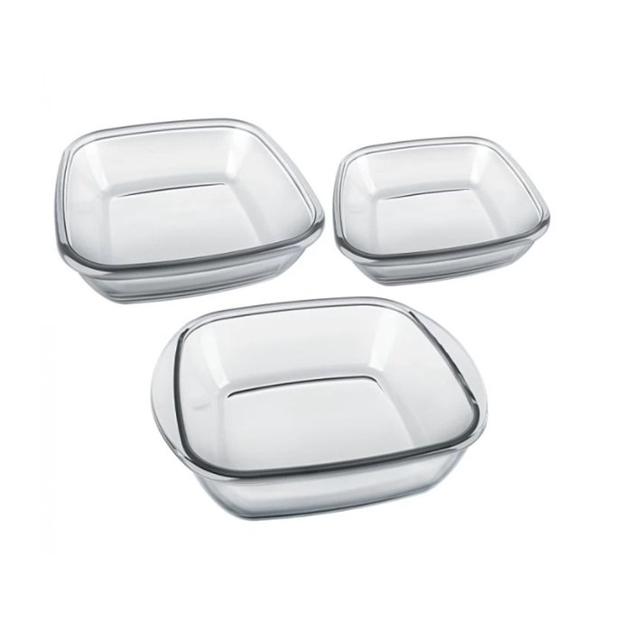 Jogo de Assadeiras Quadrada Vidro Refratário 3 Peças 0,73 L 1,5 L e 2,4 L - Nadir Figueiredo