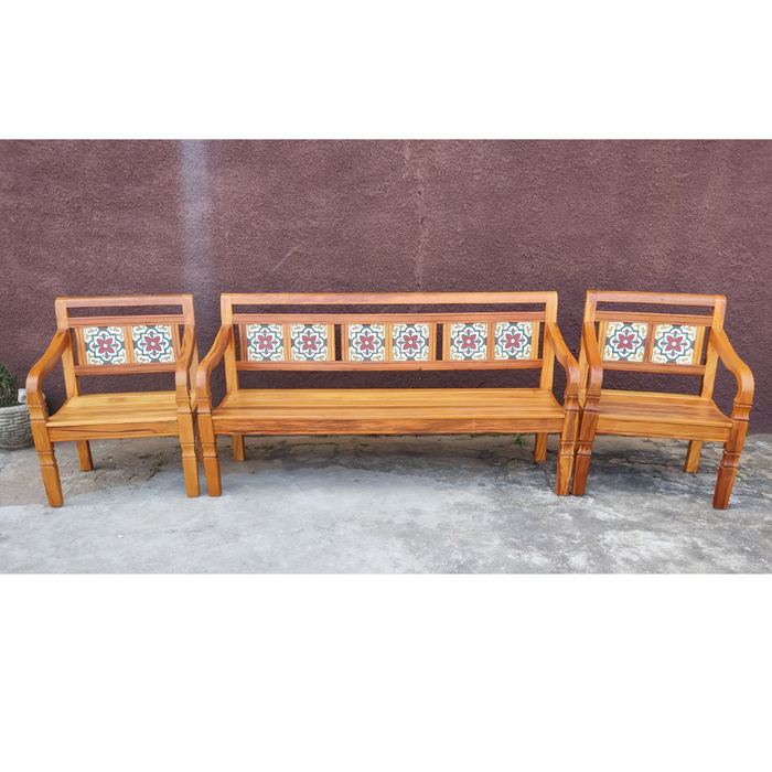 Jogo de Banco Madeira de demolição Peroba Rosa Modelo Flor