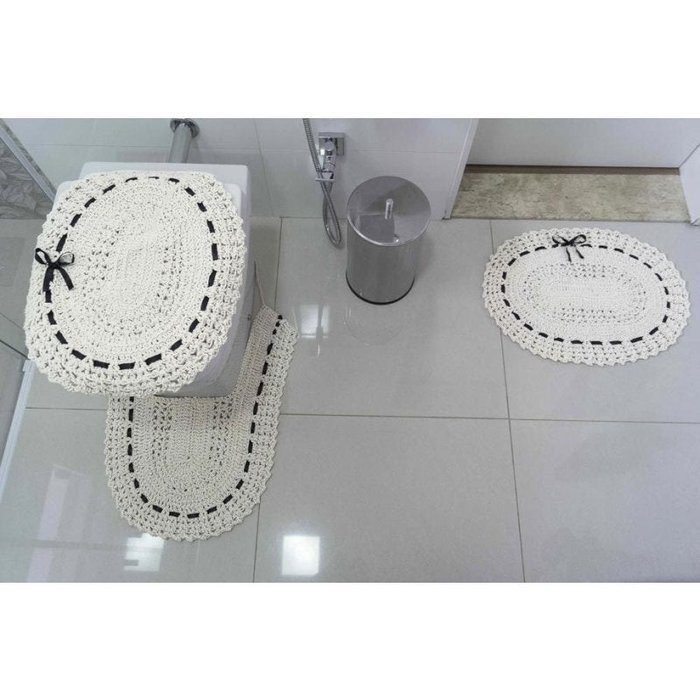 Jogo de Banheiro 03 Peças Crochê Fitado - Preto