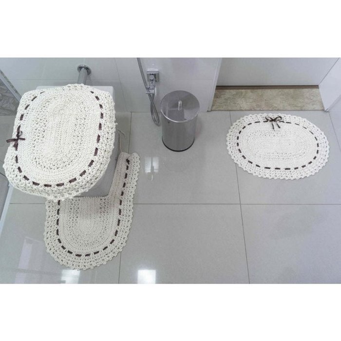 Jogo de Banheiro 03 Peças Crochê Fitado - Tabaco
