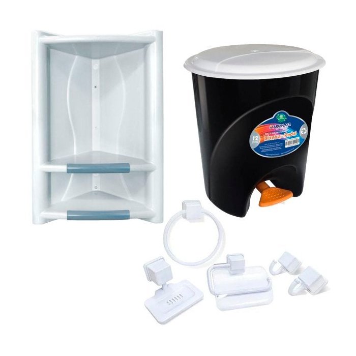 Jogo de Banheiro 5Pçs Com Cantoneira Branco e Lixeira 12Lts