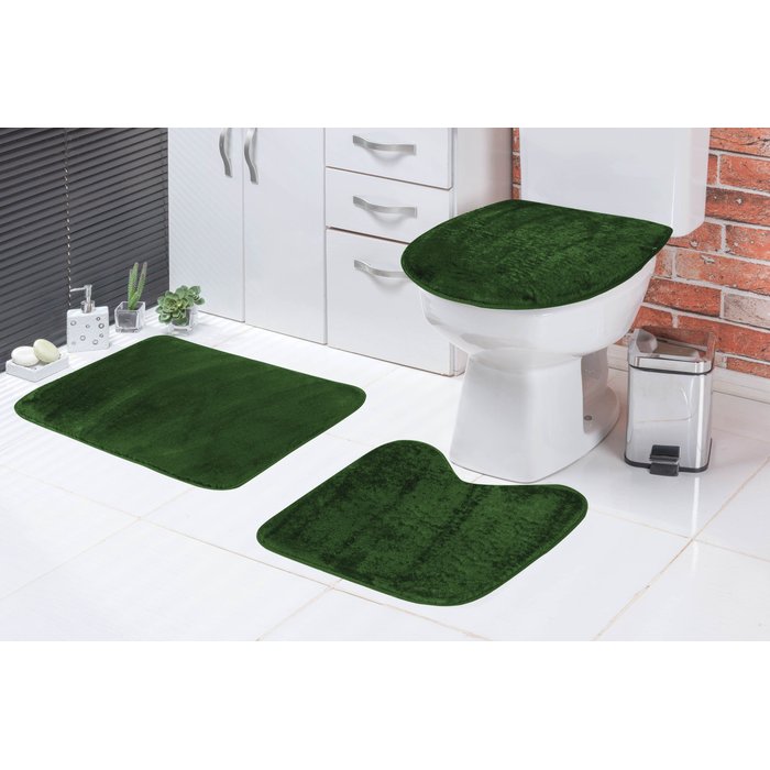 Jogo De Banheiro Liso Em Pelúcia 03 Peças Verde Musgo