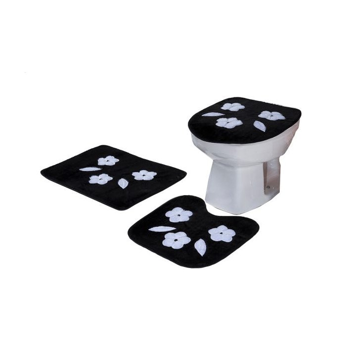 Jogo De Banheiro Padrão Três Margaridas Preto