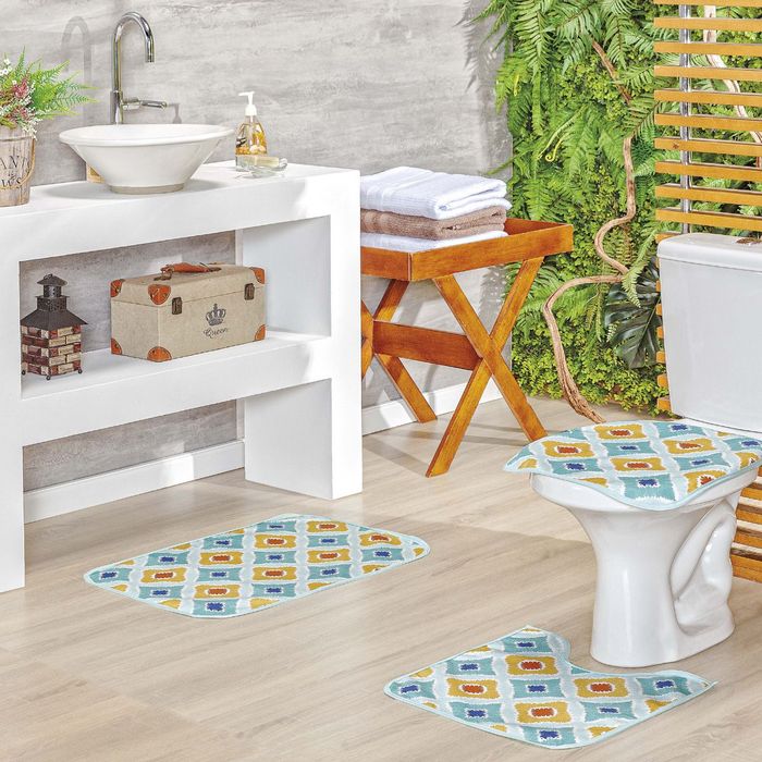 Jogo de Banheiro Tapete 3 Peças Antiderrapante com Estampa Digital:Tie Dye