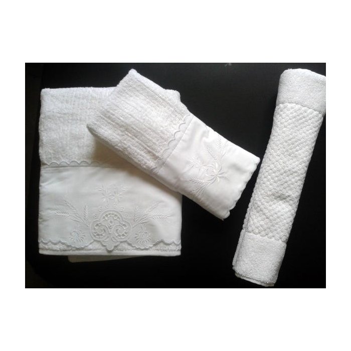 Jogo de Banho 250 fios 3 peças Festonê Trigo branco
