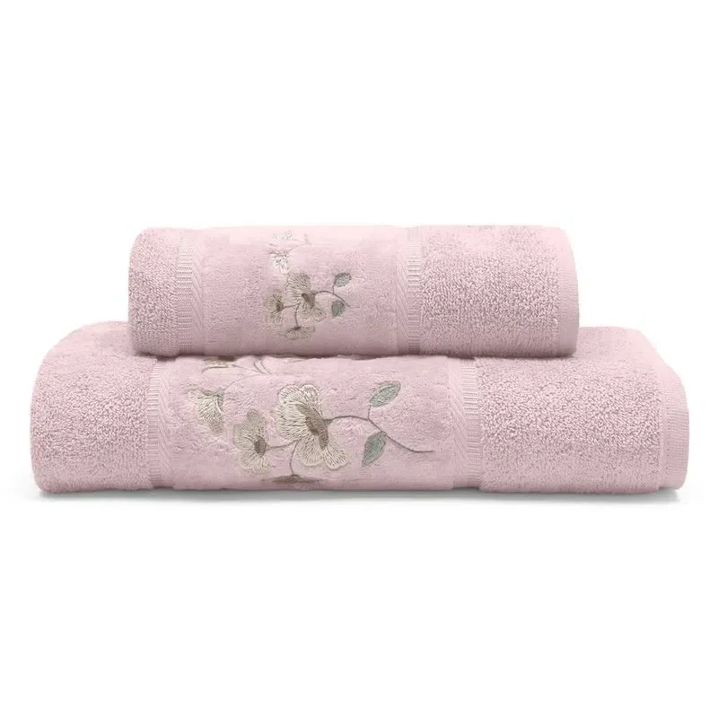 Jogo de Toalhas com 2 peças, sendo uma toalha de banho, uma toalha de rosto, todos 100% Algodão (exceto efeitos decorativos) da linha Jacquard. Corpo com 460g/m², produzidas em teares especiais que possibilitam desenvolver desenhos tanto no corpo quanto nas barras das toalhas, criando desenhos em com a própria felpa nos dois lados da toalha. A toalha Olivia possui corpo felpudo liso e uma barra aveludada com lindo bordado com flores suaves, com muito encanto e beleza que só elas conseguem transmitir. Sua estrutura possui fios com duplas torções, resultando assim em uma toalha de maior resistência.