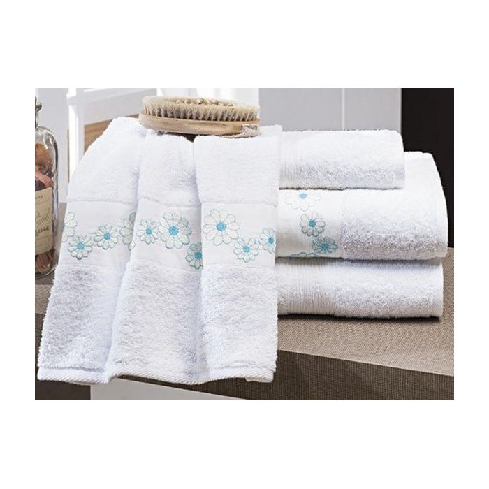 Jogo de Banho Bordado Gigante 05 Peças 100% Algodão Nuance Azul Tiffany