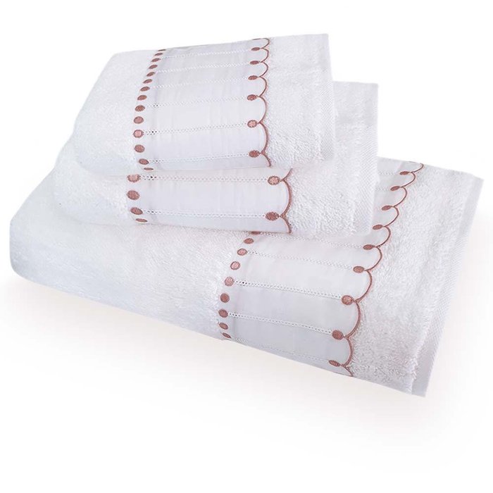 Produzido em 100% algodão, fio penteado e gramatura de 600g/m². Confeccionado com aplicação de renda bordada nas bordas das toalhas que nos remetem ao requinte e sofisticação. Kit composto por toalhas de banho, rosto e lavabo. Riqueza na atenção com os detalhes. Perfeito para compor seu banheiro! Foto meramente ilustrativa. Contém: 1 toalha de banho 150x86cm 1 toalha de rosto 48x80cm 1 toalha de lavabo 50x30cm INSTRUÇÕES DE LAVAGEM MARKEN FASSI • Lavar em temperatura de até 60°C. Processo suave; • Lavar com sabão neutro; • Não usar alvejante; • Não secar em tambor; • Passar até 110°C; Sobre os bordados passar até 80°C; • Não limpar a seco. Dicas de conservação: - Siga as instruções de lavagem e conservação dispostas na etiqueta ou embalagem do produto.