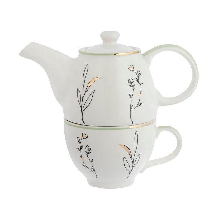O Jogo de bule Fiorella conta com 2 peças, sendo o bule com tampa e a caneca que compõe o bule. Possui capacidade de 670 ml, produzido em cerâmica e estampa minimalista pintada a mão com filete dourado que proporciona charme à peça.