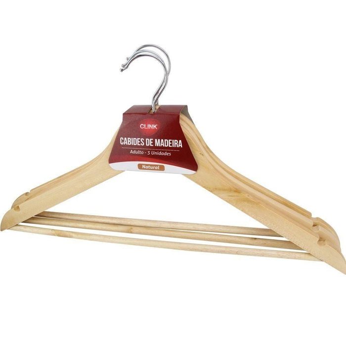 Jogo de Cabides Madeira 3 Peças - Clink Marrom